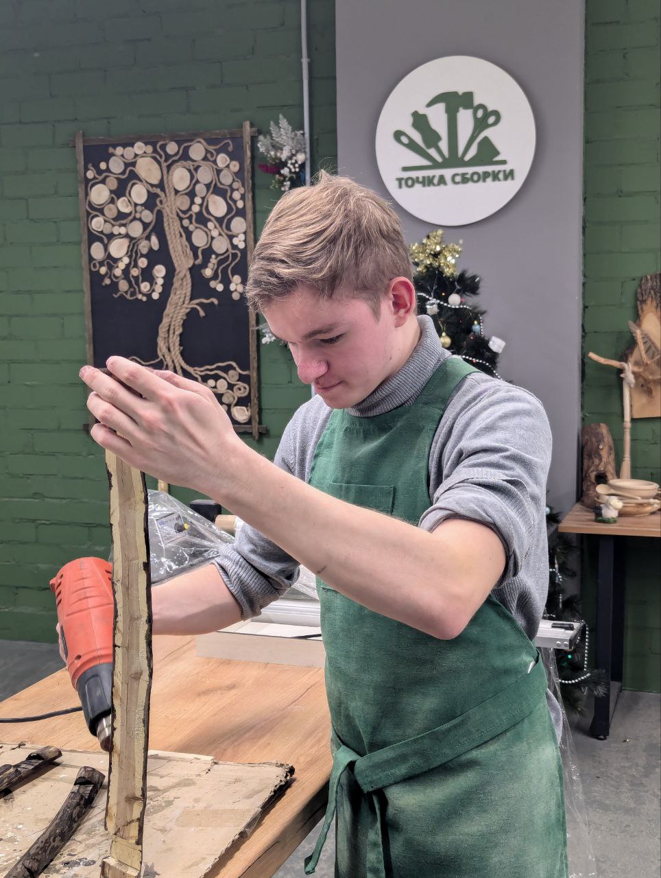 🪑 В нашем столярном цеху тоже кипит работа! Под руководством опытного мастера Рамиля Дуфаровича, Вера завершила резьбу по дереву, и у нас теперь есть невероятно живая статуэтка — Олененок. Посмотрите только на этот шедевр!